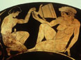 Art during the Antiquity knew absolutely no taboo with frontal nudity, it even was the norm, both for religious and secular themes. You could often see erotic or even sexually explicit illustrations as ornaments on consumer goods (see also examples in The Olympic Nude). |
